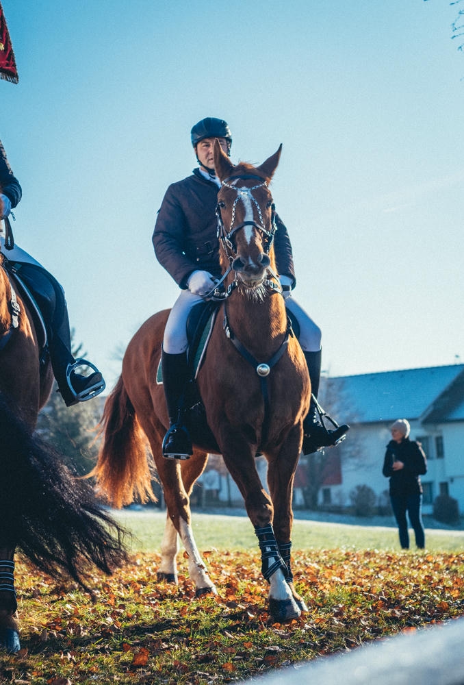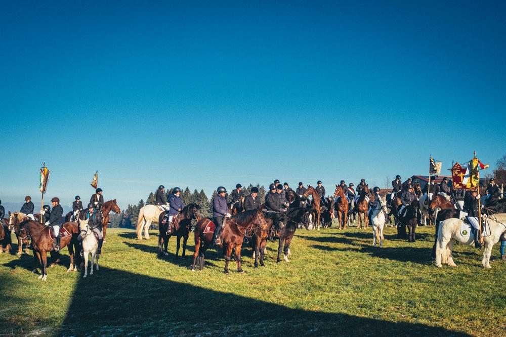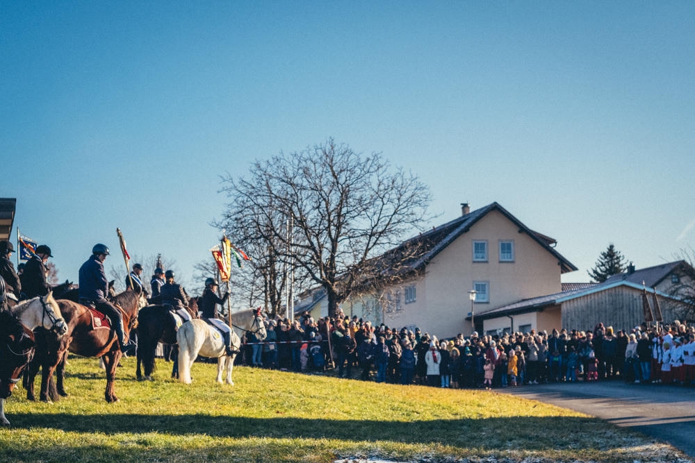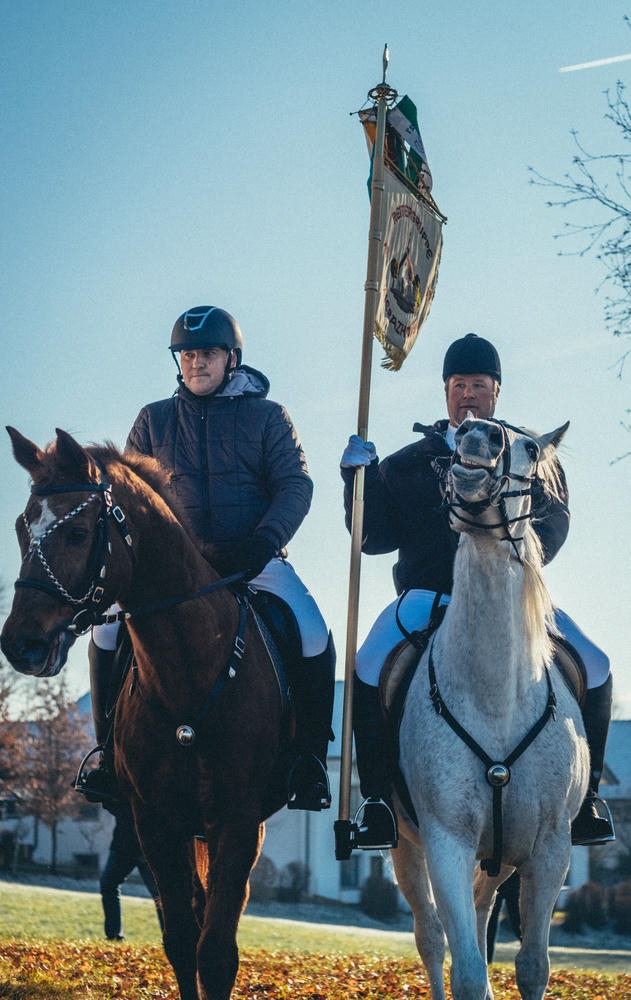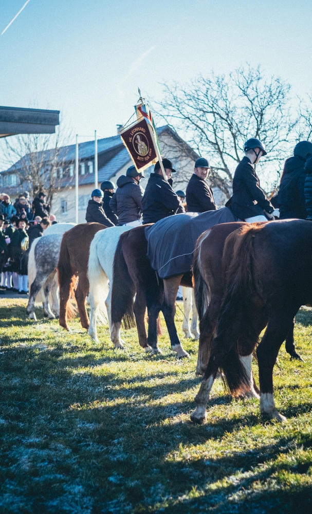 An einem kalten, aber klaren Wintertag machten sich die Reiterinnen und Reiter erneut auf ihren traditionellen Weg durch Eisenharz. Vom Herzen des Dorfes, bei der Kirche, zogen sie vorbei an der Kapelle, durch den malerischen Hof der Familie Rummel, begleitet vom rhythmischen Klang der Hufe auf gefrorenem Boden. Während des Ritts lichtete sich der morgendliche Nebel allmählich und gab den Blick frei auf die strahlende Wintersonne, die den frostigen Tag in ein goldenes Licht tauchte. Am Ende der Route empfingen die Reiterinnen und Reiter den Segen von Herrn Pfarrer Willburger, der in der klaren Luft eine besondere Wärme und Andacht verbreitete.