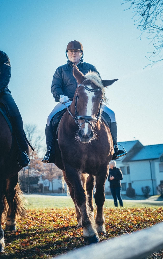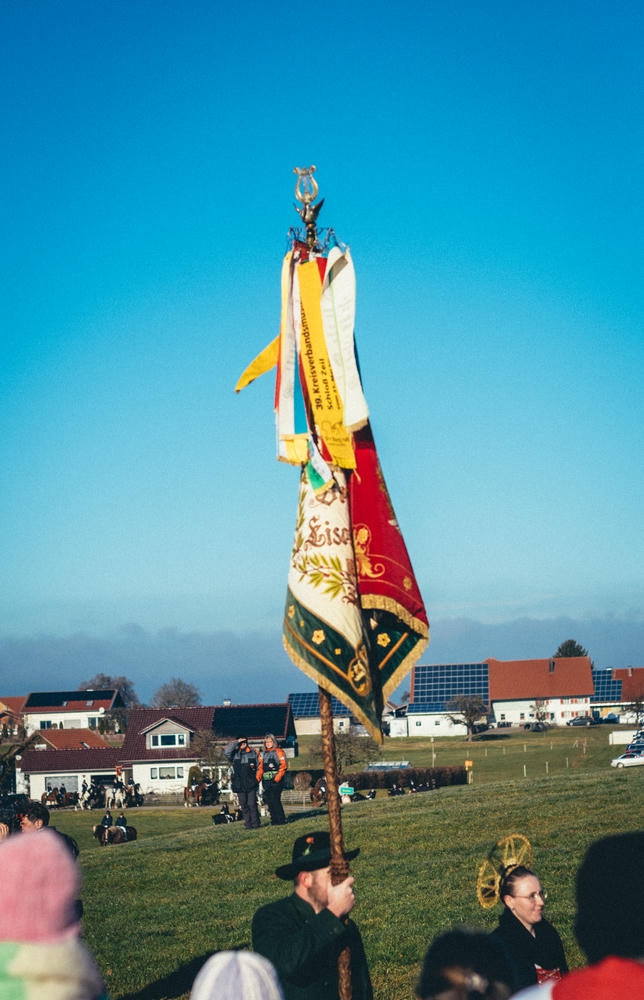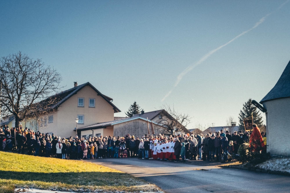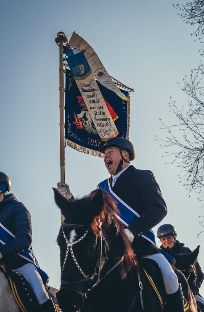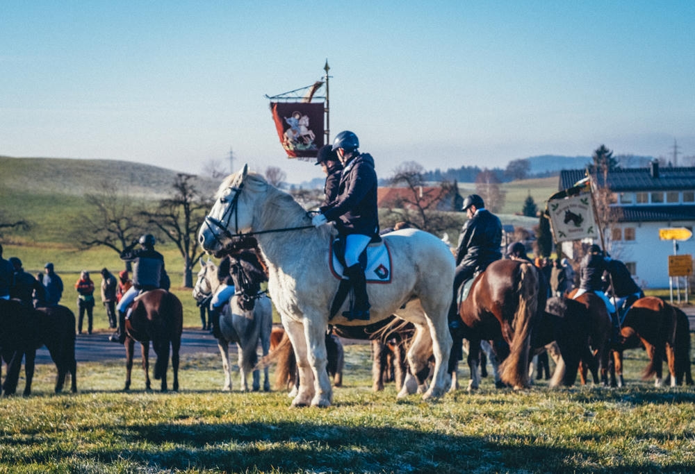 An einem kalten, aber klaren Wintertag machten sich die Reiterinnen und Reiter erneut auf ihren traditionellen Weg durch Eisenharz. Vom Herzen des Dorfes, bei der Kirche, zogen sie vorbei an der Kapelle, durch den malerischen Hof der Familie Rummel, begleitet vom rhythmischen Klang der Hufe auf gefrorenem Boden. Während des Ritts lichtete sich der morgendliche Nebel allmählich und gab den Blick frei auf die strahlende Wintersonne, die den frostigen Tag in ein goldenes Licht tauchte. Am Ende der Route empfingen die Reiterinnen und Reiter den Segen von Herrn Pfarrer Willburger, der in der klaren Luft eine besondere Wärme und Andacht verbreitete.