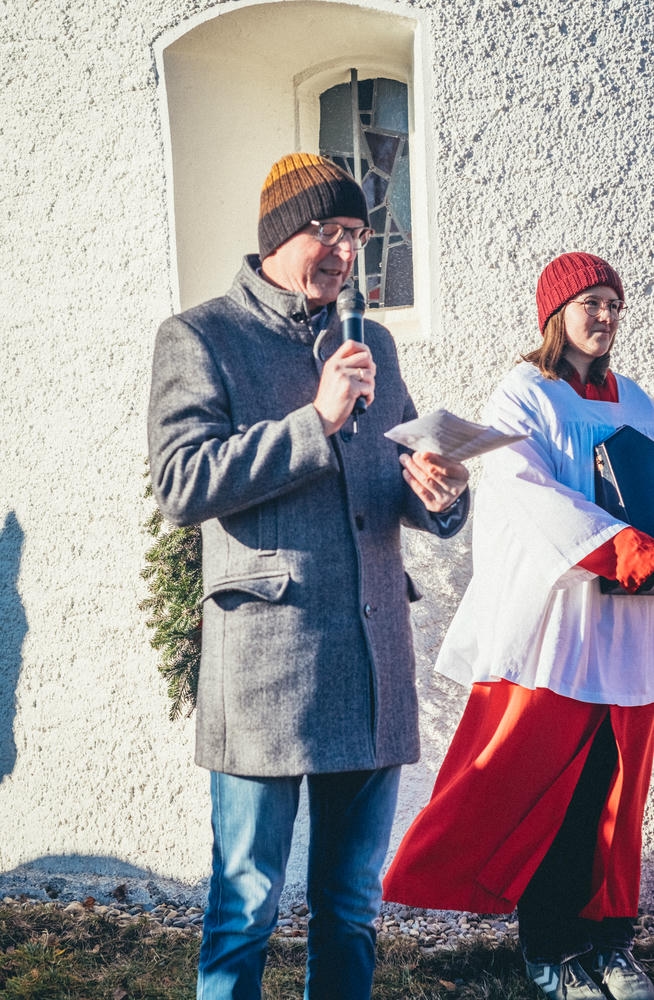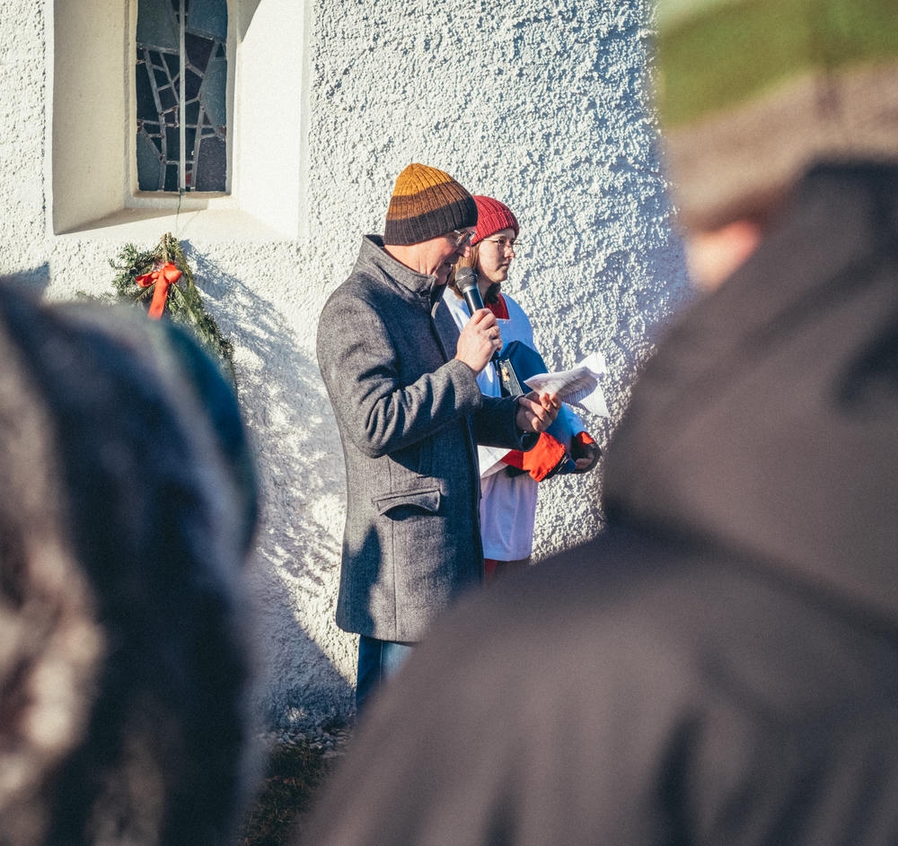 An einem bedeckten zweiten Weihnachtsfeiertag machten sich die Reiterinnen und Reiter erneut auf den Weg zur Stephanskapelle in Eisenharz, um dort den Segen für Haus und Hof zu empfangen. Zum ersten Mal konnte der traditionelle Empfang nach dem Umritt nicht in der Hans-Wunderlich-Halle stattfinden. Stattdessen wurde die Zeremonie unter freiem Himmel auf dem Gelände der Grundschule abgehalten, was dem Ereignis trotz des wolkenverhangenen Himmels eine besondere Atmosphäre verlieh..